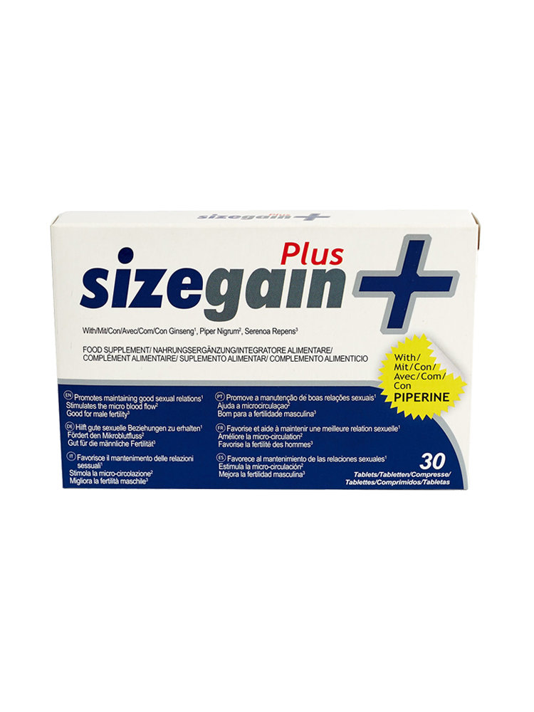 Εμπλουτισμένο με φυσικά, ενεργά συστατικά, το SizeGain Plus συμβάλλει καθοριστικά στην αύξηση του μεγέθους του πέους, σε μήκος και πάχος, καθώς και στη βελτίωση της ποιότητας της στύσης, παράλληλα με την αύξηση της διάρκειας της αντοχής. Επί παραδείγματι, η Αργινίνη προωθεί την διαστολή των αγγείων συμβάλλοντας στην άρτια ροή των υγρών και του αίματος, επιφέροντας με τον τρόπο αυτό μόνιμη αύξηση του μεγέθους του μορίου, το Panax Ginseng βελτιώνει τις φυσικές και νοητικές επιδόσεις, οι οποίες απολήγουν σε εντονότερες εκσπερματίσεις και μεγαλύτερη ερωτική ικανότητα και απόλαυση κατά τη διάρκεια της ερωτικής πράξης, ενώ η Πιπερίνη συμβάλλει στην αποτελεσματικότερη απορρόφηση των συστατικών του SizeGain επιφέροντας τα καλύτερα δυνατά αποτελέσματα.
