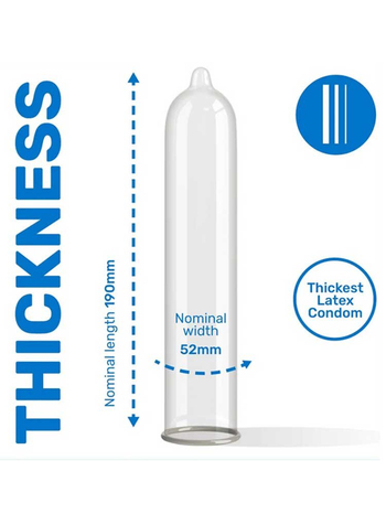Το Extra Safe είναι ακριβώς αυτό που υπόσχεται το όνομά του! Ένα πραγματικά δυνατό, παχύτερο από τα συνηθισμένα, προφυλακτικό που πρέπει να χρησιμοποιείται όταν επιθυμείτε να είστε απόλυτα προστατευμένος!. Χάρη στο επιπλέον πάχος του έχει μεγαλύτερη αντοχή στην τριβή. Κατάλληλο ιδιαίτερα για πρωκτικό σεξ. Διαθέτει λιπαντικό για ακόμη μεγαλύτερη άνεση.