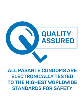 Τα προφυλακτικά Pasante έχουν πιστοποίηση CE και πληρούν όλες τις ευρωπαϊκές προδιαγραφές. Είναι απολύτως ασφαλή, κατασκευάζονται από υψηλής ποιότητας υλικό και έχουν άνετη εφαρμογή. Δεν διαθέτουν λιπαντική σπερματοκτόνο επίστρωση. Πωλούνται σε συσκευασία των 12 τμχ .