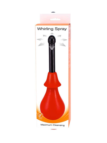 To Whirling Spray είναι ένα Anal Douche μεγάλης χωρητικότητας. Διαθέτει ενσωματωμένη "βελόνα" μικρής διαμέτρου, από την κορυφή της οποίας κυλάει το νερό - ο χρήστης ρυθμίζει την ένταση της ροής, ανάλογα με τη πίεση που θα ασκήσει στο εύκαμπτο δοχείο νερού. Το Whirling Spray διαθέτει μία επιπλέον "βελόνα", η οποία μπορεί πολύ εύκολα να προσαρμοστεί (ως προέκταση) πάνω στη συσκευή.