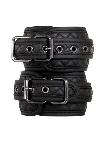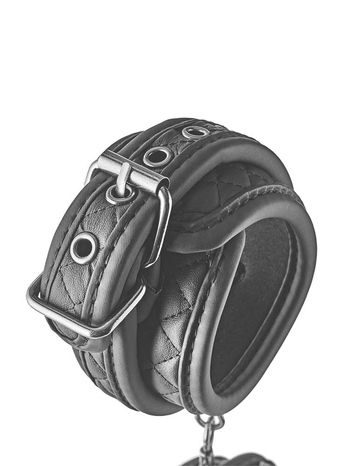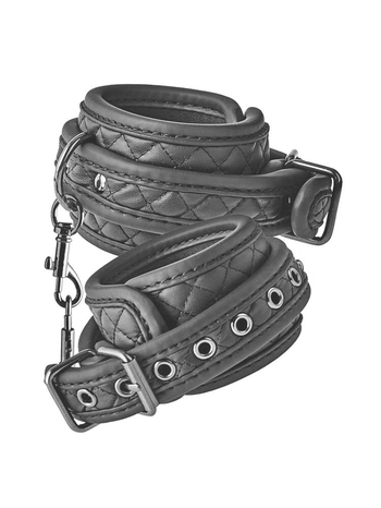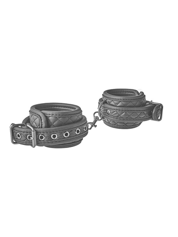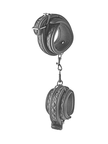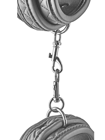 Ασφαλίζουν μέσω κομψών, μεταλλικών αγκραφών για πλήρη ασφάλεια και προσαρμόζονται σχεδόν σε όλα τα μεγέθη, κρατώντας τον υποτακτικό σας απόλυτα ακινητοποιημένο, χωρίς καμία απολύτως δυνατότητα διαφυγής. Επίσης, μπορούν να συνενωθούν και μεταξύ τους μέσω μίας μικρής αλυσίδας 12cm με άγκιστρο, η οποία μπορεί και να αφαιρεθεί προκειμένου να συνδέσετε στις χειροπέδες όποιο άλλο αξεσουάρ της συλλογής σας επιθυμείτε.