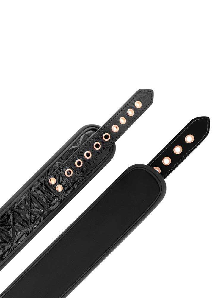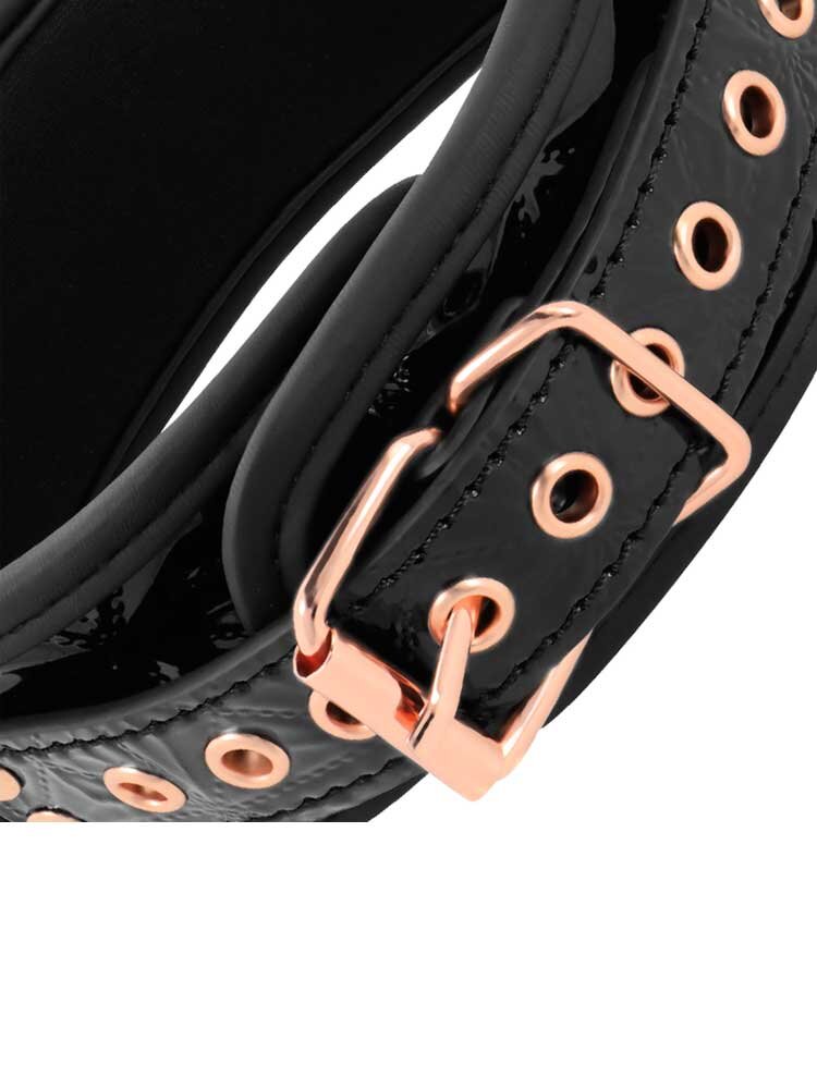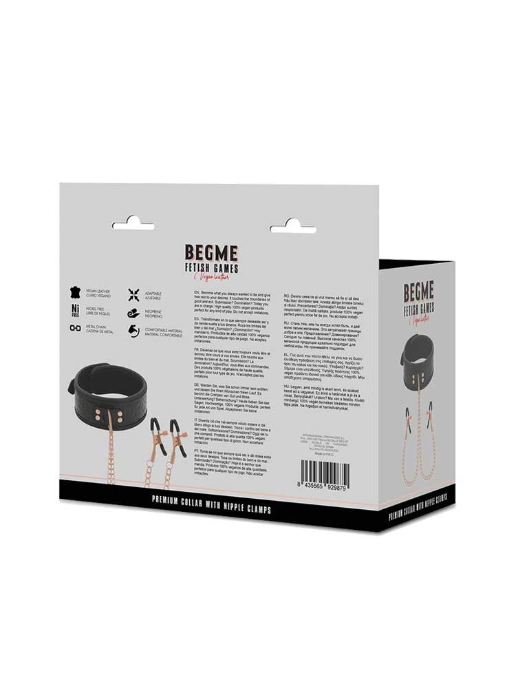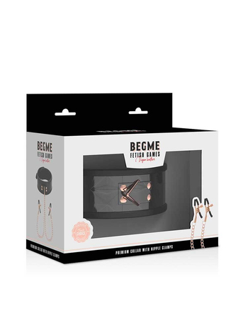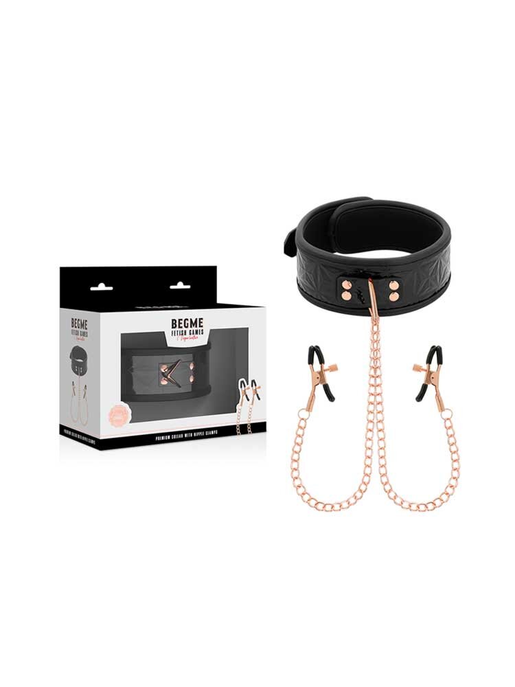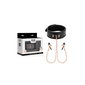 Το σετ αποτελείται από ένα πολυτελές μαύρο κολάρο από τεχνητό δέρμα με ανάγλυφη επιφάνεια, στο κέντρο του οποίου είναι τοποθετημένο ένα μεταλλικό O-ring σε ροζ χρυσό μαζί με δύο ελαφριές αλυσίδες, σε ροζ χρυσό, οι οποίες καταλήγουν σε 2 nipple clamps, κατασκευασμένα από μέταλλο χωρίς νικέλιο τα οποία καλύπτονται από καουτσούκ, για να αποφεύγεται ο κίνδυνος τραυματισμού.