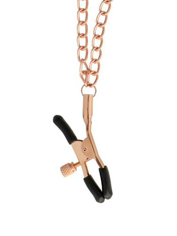 Παγιδέψτε τις θηλές σας ανάμεσα στους σφικτήρες και νοιώστε ηδονικά τσιμπήματα πόνου να κατακλύζουν το σώμα σας και να σας διεγείρουν. Το άγγιγμα της κομψής αλυσίδας πάνω στο γυμνό σας κορμί θα ξεσηκώσει περαιτέρω τις αισθήσεις σας και θα σας χαρίσει απίστευτη ευχαρίστηση.