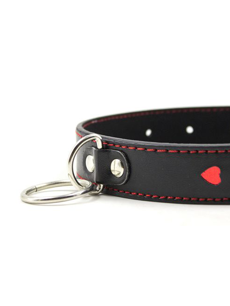 Κατασκευασμένο από άριστης ποιότητας συνθετικό δέρμα, το σετ περιλαμβάνει ένα κομψό, δερμάτινο κολάρο με μαύρη επιφάνεια στην εξωτερική πλευρά και κόκκινη στην εσωτερική, διακοσμημένο κατά μήκος με μικρές οπές σε σχήμα καρδιάς και μία αποσπώμενη, μακριά, ιδιαίτερα στιβαρή, μεταλλική αλυσίδα, η οποία καταλήγει σε έναν μαύρο δερμάτινο ιμάντα για τον καρπό, με κόκκινες λεπτομέρειες, σχεδιασμένο για ξεκούραστο και σταθερό κράτημα.
