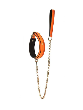 Κομψό και αριστοκρατικό, το σετ περιλαμβάνει ένα απαλό στην αφή κολάρο, κατασκευασμένο από νεοπρένιο, υλικό ιδιαίτερα μαλακό και ταυτόχρονα εξαιρετικά ανθεκτικό, ιδανικό για έντονο παιχνίδι, στο εσωτερικό του οποίου υπάρχει απαλή επίστρωση, για άνετη, πολύωρη χρήση, καθώς και μία αποσπώμενη, μεταλλική αλυσίδα σε χρυσό χρώμα με ιμάντα για τον καρπό, φτιαγμένο από το ίδιο υλικό με το κολάρο. Το κολάρο ρυθμίζεται πλήρως και εφαρμόζει τέλεια σε όλα σχεδόν τα μεγέθη, ενώ ασφαλίζει μέσω μίας ανθεκτικής αγκράφας για απόλυτα στιβαρά δεσίματα.