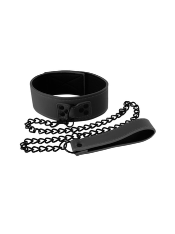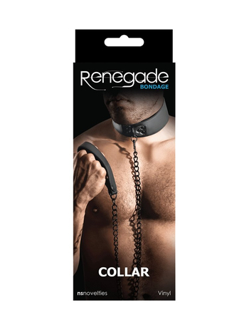 Το κολάρο είναι κατασκευασμένο από υψηλής ποιότητας και αντοχής βινύλ, υλικό ανθεκτικό ακόμη και στα πιο σκληρά και έντονα παιχνίδια και ασφαλίζει με ένα απόλυτα προσαρμοζόμενο, εύχρηστο κλείστρο τύπου Velcro, για γρήγορη και εύκολη αποδέσμευση. Το κολάρο συνδέεται από μια αφαιρούμενη μεταλλική αλυσίδα με ανθεκτική δερμάτινη λαβή στο τελείωμά της, για να κρατάτε τον σκλάβο σας κάτω από τον απόλυτο έλεγχό σας, η οποία μπορεί να χρησιμοποιηθεί και μόνη της ή σε συνδυασμό με άλλα bondage αξεσουάρ που έχετε ήδη στη διάθεσή σας.