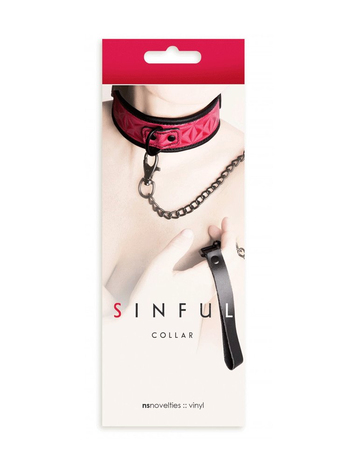 Το Sinful Collar, το κομψό και μοντέρνο κολάρο της εταιρίας NS Novelties , είναι κατασκευασμένο από υψηλής ποιότητας βινύλιο και δέρμα, με μια υπέροχη, σχεδίαση στην εξωτερική του επιφάνεια, η οποία διαθέτει εξαιρετική, ανάγλυφη διακόσμηση και εσωτερικό πλαισιωμένο από υψηλής ποιότητας, επαναχρησιμοποιούμενη επένδυση νεοπρενίου, ιδιαίτερα ανθεκτική στη χρήση.