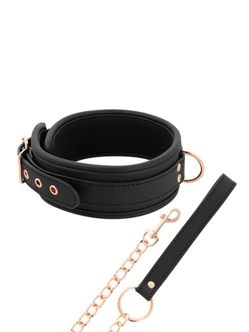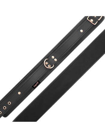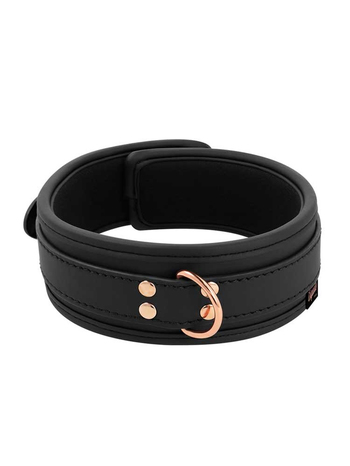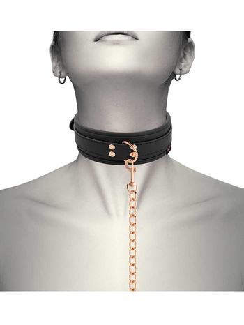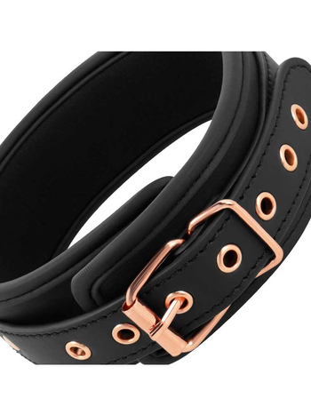 Κατασκευασμένο από συνθετικό δέρμα άριστης ποιότητας, υλικό εξαιρετικά μαλακό και ανθεκτικό με ενισχυμένη εσωτερική επιφάνεια για παιχνίδι χωρίς σημάδια και γρατσουνιές και διακοσμημένο με μεταλλικές λεπτομέρειες σε ροζ- χρυσό για έξτρα αίσθηση πολυτέλειας, το κολάρο ασφαλίζει πλήρως μέσω μίας ρυθμιζόμενης, μεταλλικής αγκράφας και προσαρμόζεται απόλυτα στο επιθυμητό κάθε φορά μέγεθος. Στο κέντρο του διαθέτει δακτύλιο τύπου -Ο, στον οποίο μπορείτε να συνδέσετε, μέσω κλιπ, την αποσπώμενη μεταλλική, ροζ-χρυσή αλυσίδα με το δερμάτινο λουρί για τον καρπό ή οποιοδήποτε συμβατό αξεσουάρ έχετε ήδη στην κατοχή σας. Το λουρί μπορεί να χρησιμοποιηθεί και μόνο του.