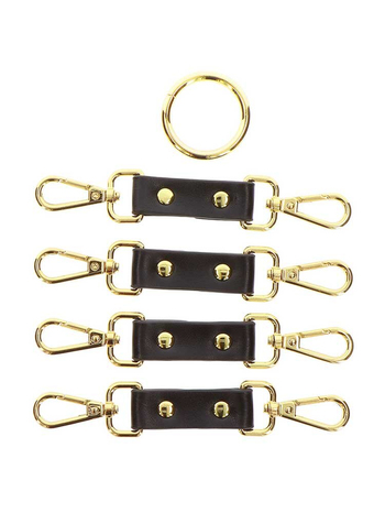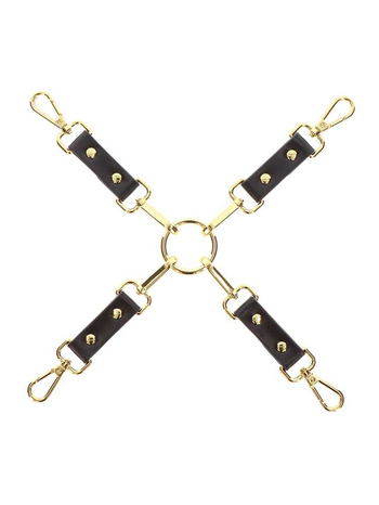 Λιτό, κομψό και σέξι, σε κλασικό μαύρο χρώμα με χρυσά μεταλλικά στοιχεία και εξωραφές για έξτρα νότα πολυτέλειας.Το Hogtie περιλαμβάνει ένα ιδιαίτερα σταθερό σύστημα δέσμευσης (σταυρό) των άνω και κάτω άκρων το οποίο επιτρέπει στα χέρια και τα πόδια να συγκρατούνται ταυτόχρονα πίσω από την πλάτη, δίνοντας στο ταίρι σας τον απόλυτο έλεγχο και ανεβάζοντας την ευχαρίστησή του στα ύψη.