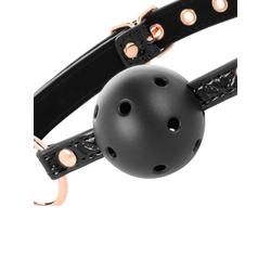 Η μπάλα διαθέτει οπές για διευκόλυνση της αναπνοής, ενώ το δερμάτινο λουράκι με τα δύο μεταλλικά “o-rings” για τέλεια ρύθμιση, κλείνει με μία μεταλλική αγκράφα φροντίζοντας να διατηρεί το φίμωτρο σταθερό στην θέση του.