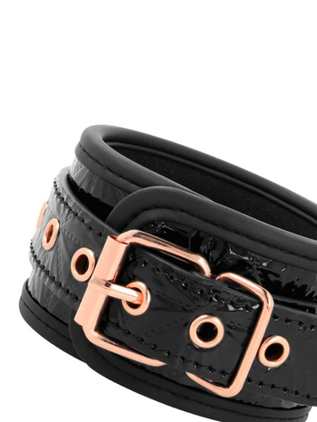 Κατασκευασμένες από ανάγλυφο, γυαλιστερό PU με σχέδια από τεχνητό δέρμα κροκό και πλαισιωμένες από απαλή και συνάμα εξαιρετικά ανθεκτική, φιλική προς το υγρό στοιχείο, επένδυση από νεοπρένιο, ιδανική για πολύωρη χρήση χωρίς αποκαλυπτικά σημάδια, τραυματισμούς και κοκκινίλες, οι χειροπέδες θα προσθέσουν ένα άγγιγμα πολυτέλειας και αισθησιασμού στις restraint εμπειρίες σας.