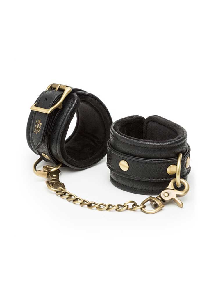 Βυθιστείτε στις απολαύσεις των συναρπαστικών BDSM παιχνιδιών και διδάξτε στον εραστή σας την τέχνη της υποταγής με τις υπέροχες Faux Leather Wrist Cuffs, τις νέες, πανέμορφες χειροπέδες από την πολυτελή σειρά Fifty Shades of Grey Bound to You.