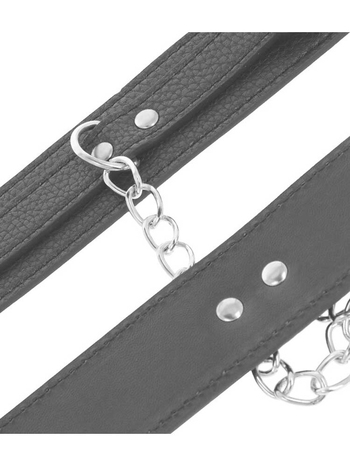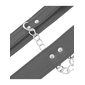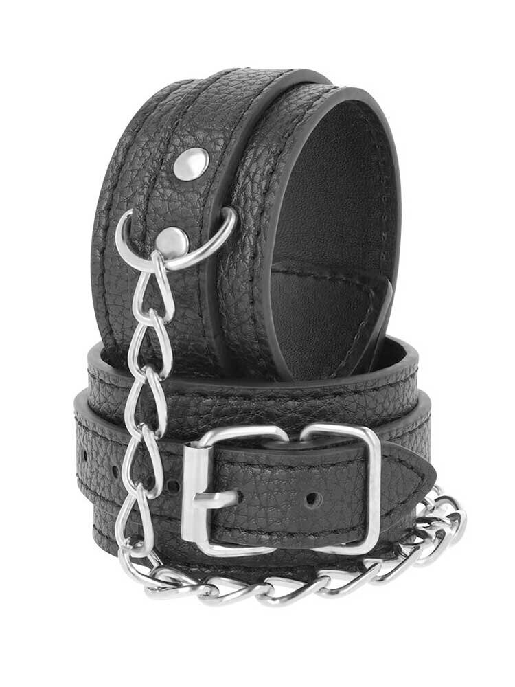 Κατασκευασμένες από εξαιρετικής ποιότητας τεχνητό δέρμα με ανάγλυφη επιφάνεια, απαλή εσωτερική επένδυση για πολύωρη χρήση χωρίς ερεθισμούς και κοκκινίλες και μεταλλικές λεπτομέρειες χωρίς νικέλιο, για έξτρα πολυτελή εμφάνιση, οι χειροπέδες ασφαλίζουν πλήρως μέσω ρυθμιζόμενης, μεταλλικής αγκράφας και προσαρμόζονται στις επιθυμητές κάθε φορά διαστάσεις, ενώ συνενώνονται μεταξύ τους μέσω μίας αποσπώμενης ασημένιας αλυσίδας, η οποία συνδέεται με άγκιστρα σε στέρεα D-Rings για πλήρη ακινητοποίηση. Στους δακτυλίους μπορείτε να συνενώσετε και άλλα bondage αξεσουάρ της συλλογής σας για να εμπλουτίσετε το παιχνίδι σας.