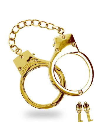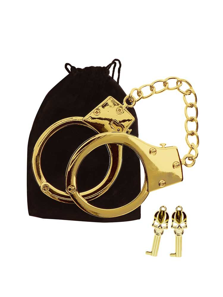 Κατασκευασμένες από ανθεκτικό επιχρυσωμένo μέταλλο, οι χειροπέδες είναι σχεδιασμένες για να συγκρατούν τους καρπούς του υποτακτικού σας κατά τη διάρκεια των ερωτικών σας περιπτύξεων, κρατώντας τον υπό τον απόλυτο έλεγχο σας. Μπορούν να ενωθούν και μεταξύ τους με μία μικρή αλυσίδα για τέλεια ακινητοποίηση. Είναι πλήρως ρυθμιζόμενες σε πολλά μεγέθη, ενώ διαθέτουν επιπλέον και 2 κλειδιά για ακόμη μεγαλύτερη ασφάλεια.