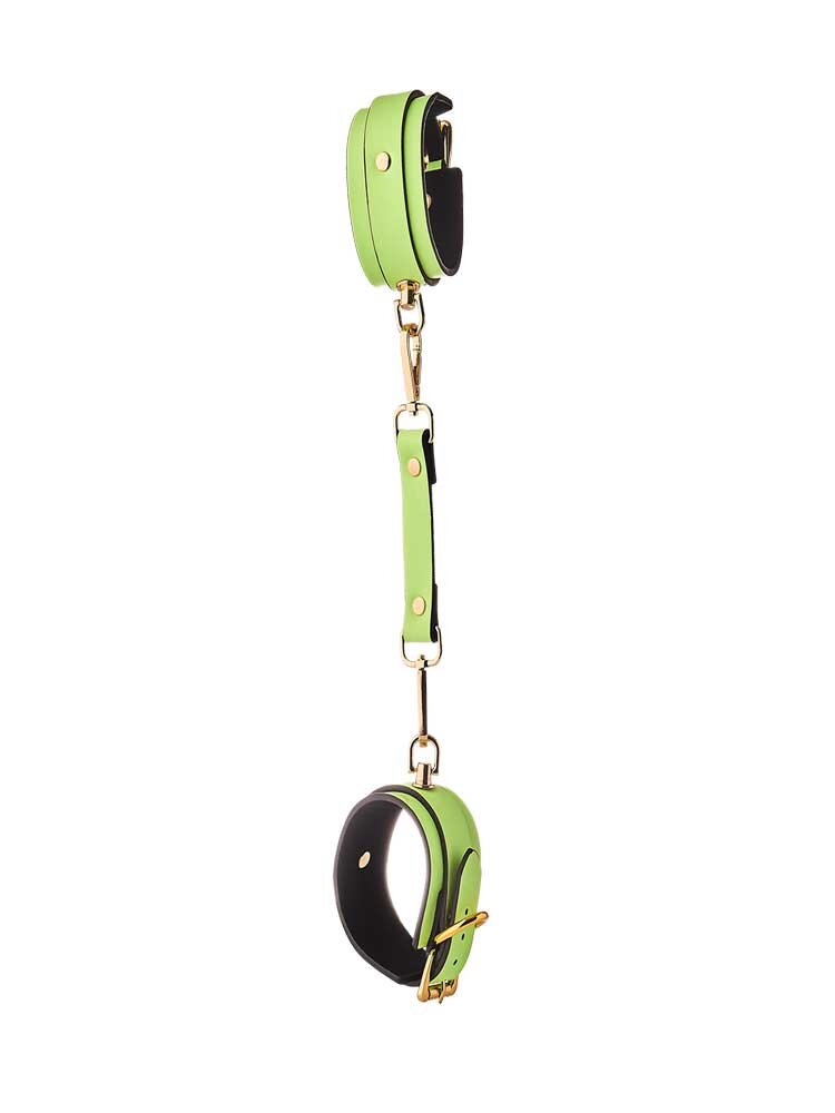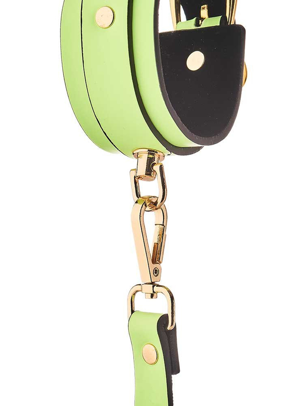 Οι χειροπέδες είναι κατασκευασμένες από εξαιρετικής ποιότητας και υφής δέρμα faux, με ιδιαίτερα μαλακή, εσωτερική επένδυση από νεοπρένιο για άνετη πολύωρη χρήση, χωρίς σημάδια και ερεθισμούς. Ασφαλίζουν πλήρως μέσω μίας ρυθμιζόμενης, μεταλλικής αγκράφας και προσαρμόζονται άψογα στις επιθυμητές κάθε φορά διαστάσεις. Μία αλυσίδα 10cm, αποσπώμενη από τη μία πλευρά με γαντζάκι, διακοσμημένη με χρυσές, μεταλλικές λεπτομέρειες, ενώνει μέσω στέρεων D-Rings, τις δύο μανσέτες μεταξύ τους, για πλήρη ακινητοποίηση. Στους δακτυλίους μπορείτε να προσαρτήσετε και άλλα bondage αξεσουάρ της συλλογής σας για να εμπλουτίσετε το παιχνίδι σας.