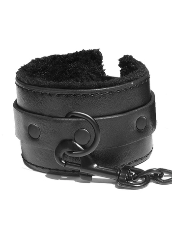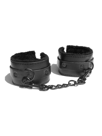Όπως ένα πεντανόστιμο φρυγανισμένο marshmallow, μαλακό στο εσωτερικό και σκληρό στο εξωτερικό, οι όμορφες αυτές χειροπέδες είναι κατασκευασμένες από μαύρο τεχνητό (faux) δέρμα, υλικό σκληρό και σκοτεινό, ενώ στο εσωτερικό τους διαθέτουν επένδυση από εξαιρετικά απαλή πλαστική γούνα για μεγαλύτερη άνεση και προστασία. Μέσω των κομψών, μεταλλικών αγκραφών που διαθέτουν, προσαρμόζονται σχεδόν σε όλους τους καρπούς, κρατώντας τους απόλυτα ακινητοποιημένους χωρίς να αφήνουν το παραμικρό σημάδι, ενώ μπορούν να συνενωθούν και μεταξύ τους μέσω μίας μικρής αλυσίδας με άγκιστρο, η οποία μπορεί να αφαιρεθεί και πλήρως, προκειμένου να συνδέσετε στις χειροπέδες όποιο άλλο αξεσουάρ της συλλογής σας επιθυμείτε.