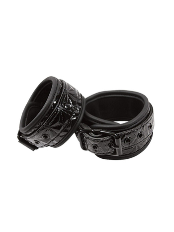 Κατασκευασμένες από ανάγλυφο, εντυπωσιακό βινύλ, πλαισιωμένο από απαλή και συνάμα εξαιρετικά ανθεκτική, φιλική προς το υγρό στοιχείο, επένδυση από νεοπρένιο, ιδανική για πολύωρη χρήση χωρίς αποκαλυπτικά σημάδια και κοκκινίλες, οι χειροπέδες θα προσθέσουν ένα άγγιγμα πολυτέλειας και αισθησιασμού στα παιχνίδια σας. Επιπλέον, διαθέτουν ρυθμιζόμενους ιμάντες για να προσαρμόζονται ακριβώς στο επιθυμητό μέγεθος και σύστημα ασφάλισης πόρπης για μέγιστη ασφάλεια.
