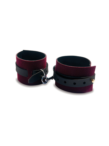 Το Kit περιλαμβάνει ένα ζευγάρι κομψές, ρυθμιζόμενες χειροπέδες, ελαφριές και άνετες, οι οποίες ασφαλίζουν με ένα λιτό κούμπωμα για γρήγορη απελευθέρωση, ενώ ενώνονται μεταξύ τους με γάντζο, για να μπορείτε να προσαρμόσετε επάνω τους και άλλα bondage αξεσουάρ, καθώς και μία όμορφη βελούδινη μάσκα για τα μάτια, η οποία παραμένει στη θέση της μέσω ενός ελαστικού ιμάντα και σας παρέχει πλήρη κάλυψη. Τα αξεσουάρ είναι κατασκευασμένα από faux δέρμα και μπορντό βελούδο, υλικά τα οποία τους προσδίδουν μία ξεχωριστή νότα πολυτέλειας, ενώ η ποιότητα της κατασκευής και τα καινοτόμα σχεδιαστικά χαρακτηριστικά τους εξασφαλίζουν ότι μπορείτε να παίξετε με ασφάλεια, χωρίς συμβιβασμούς στον αισθησιασμό.