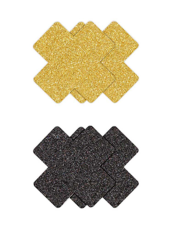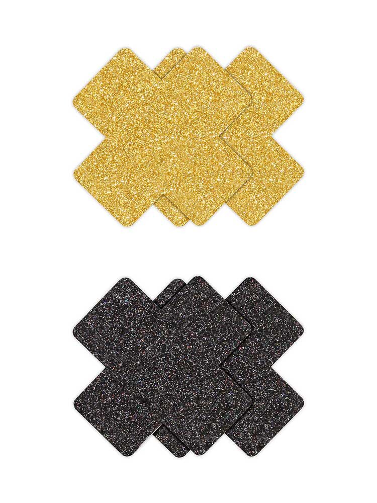 Διακοσμητικά θηλών με glitter Cross Glow σε χρυσό και μαύρο χρώμα (2 pieces).