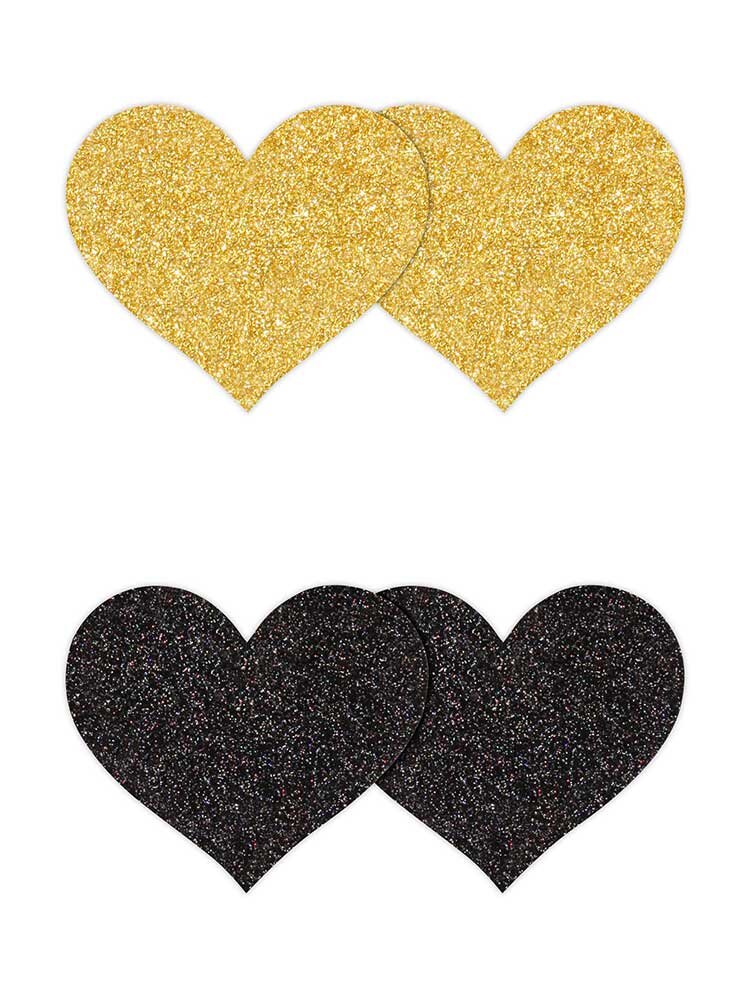 Heart Glitter Glow Black & Gold (2 Pairs) Pretty Pasties NS Novelties