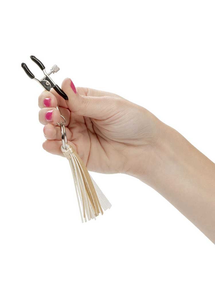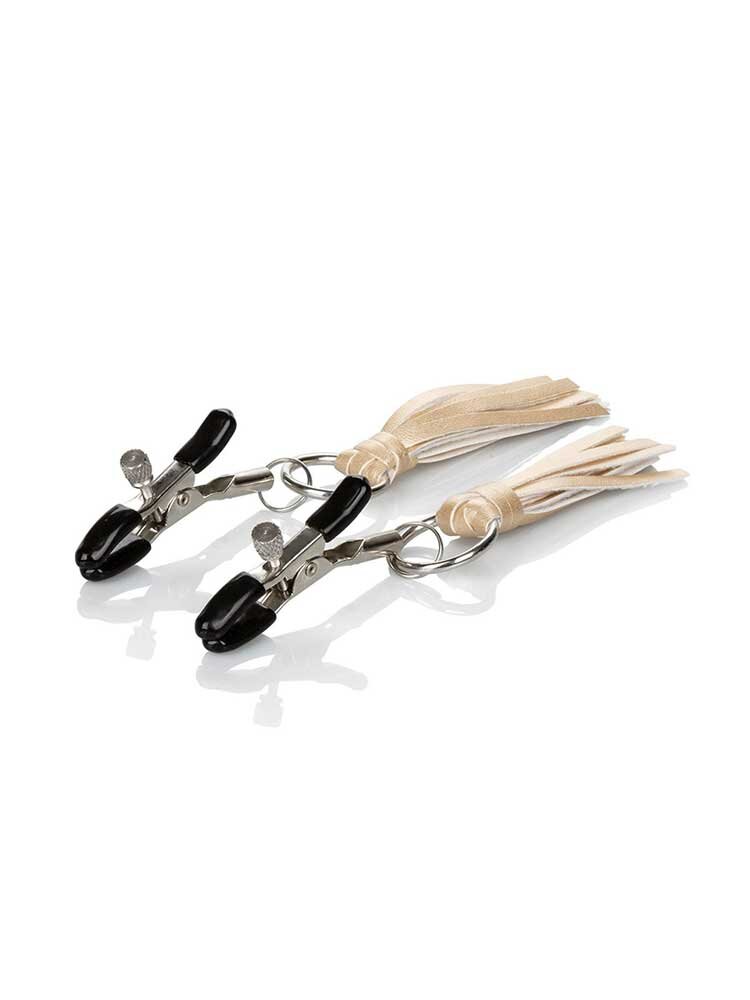 Εξερευνήστε την kinky και σκανδαλιάρικη πλευρά του εαυτού σας και διευρύνετε τα σεξουαλικά σας όριά με τους εξαιρετικούς Playful Tassels Nipple Clamps, τους νέους, μοντέρνους σφικτήρες θηλών με διακοσμητικές φούντες από την εταιρία CalExotics.
