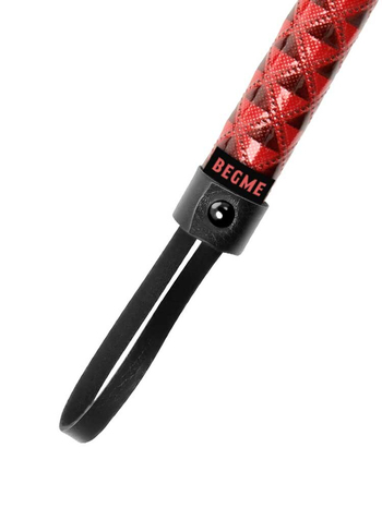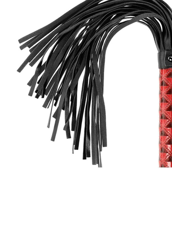 Κατασκευασμένο από απόλυτα ασφαλή για το σώμα υλικά, το μαστίγιο διαθέτει πυκνές, μακριές ουρές, ιδανικές για τσουχτερές ξυλιές, στιβαρή λαβή σε όμορφο κόκκινο χρώμα με μαύρες κομψές λεπτομέρειες για ακριβή χτυπήματα και βολικό κορδόνι καρπού για άνετο κράτημα. Μετακινήστε απαλά τις λεπτές λωρίδες του flogger στο κορμί του εραστή σας και αφουγκραστείτε το ξύπνημα των αισθήσεών του, κατόπιν κατεβάστε τις με περισσότερη δύναμη και νοιώστε τον να σπαρταρά από πόθο και προσμονή. Απαραίτητη πάντα η συναίνεση του / της συντρόφου σας.