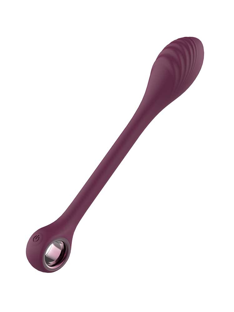 Ο δονητής κυκλοφορεί σε πανέμορφο κερασί χρώμα και διαθέτει γυαλιστερή λαβή σε σχήμα δαχτυλιδιού, η οποία προσθέτει μια πινελιά κομψότητας στις προσωπικές σας στιγμές, ενώ παράλληλα παρέχει ασφαλές κράτημα και αβίαστο ελιγμό στην κίνηση.
