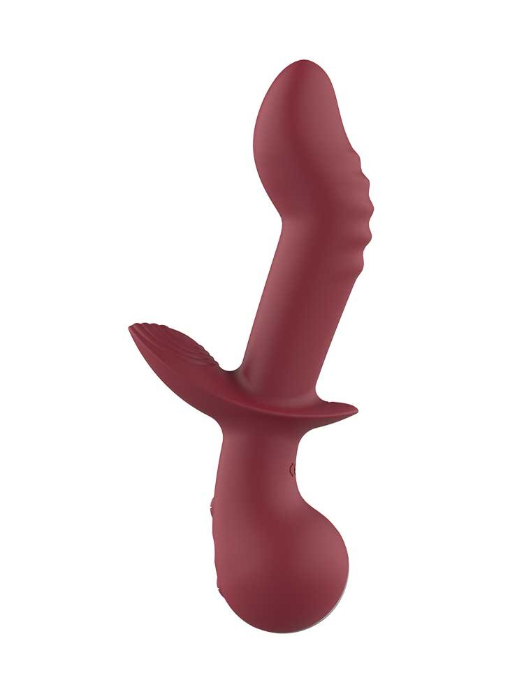 Σέξι και προκλητικός, σε βαθύ κόκκινο, ο δονητής διαθέτει έναν απαλής υφής, στιβαρό, αλλά εύκαμπτο άξονα με σειρά πτυχώσεων στη ράχη του για ισχυρότερη διέγερση κατά την επαφή και κυρτό άκρο με έντονη κλίση προς τα μέσα για άνετη, κολπική διείσδυση, καθώς και ένα πολύ μικρότερο τμήμα, με απαλές ραβδώσεις, για ανεπανάληπτη τόνωση της κλειτορίδας.