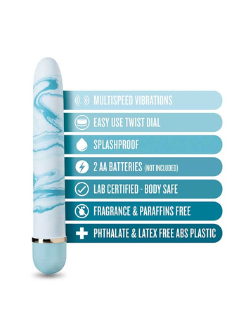 Κομψός και σέξι, σε υπόλευκο χρώμα με τουρκουάζ νερά, μοντέρνα σχεδίαση και λεπτό, διακριτικό σχήμα, ιδανικό για εσωτερική αλλά και για εξωτερική διέγερση, ο Blueberry Haze είναι μελετημένος να συνοδεύει τέλεια κάθε ερωτική στάση ή πράξη είτε τον απολαμβάνετε μόνοι σας είτε με τον /την σύντροφό σας.