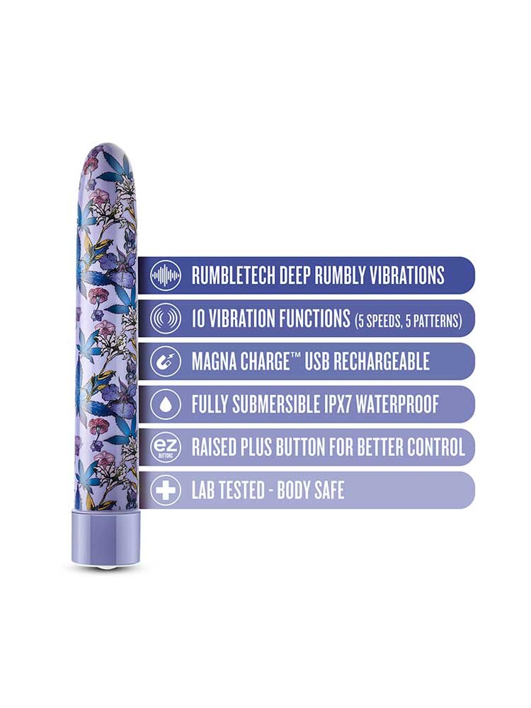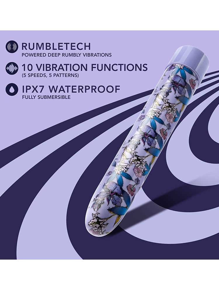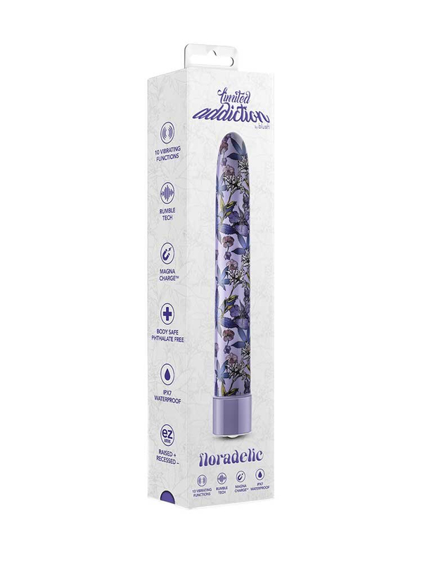 Κομψός, καλλίγραμμος, σούπερ σέξι, σε αριστοκρατικό μοβ, με floral printed επιφάνεια, μοντέρνα εμφάνιση, λείο ομαλό φινίρισμα και διακριτικό μέγεθος, ο Floradelic θα βάλει φωτιά στις αισθήσεις σας οδηγώντας σας σε συναρπαστικές εμπειρίες ικανοποίησης