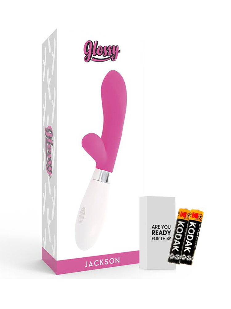 Παιχνιδιάρικός, γοητευτικός και σούπερ σέξι σε υπέροχο μαύρο-άσπρο με ένα ασημένιο, διακοσμητικό δαχτυλίδι στη μέση του, λεία απαλή υφή, ευέλικτη κίνηση και τέλειες αναλογίες, ο Glossy Jackson είναι εφοδιασμένος με έναν λεπτό καμπυλόγραμμο, εύκαμπτο κορμό με βολβοειδή παχιά κεφαλή, ιδανική για εύκολη διείσδυση, γρήγορο εντοπισμό και ισχυρή τόνωση του σημείο G, και ένα μικρότερο στέλεχος, στο μπροστινό τμήμα του, σχεδιασμένο να διεγείρει ταυτόχρονα την κλειτορίδα, χαρίζοντας ανεπανάληπτα κύματα οργασμού.