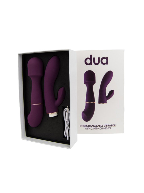Το DUA είναι κατασκευασμένο από απαλή και λεία στην αφή σιλικόνη, 100% ασφαλή για το σώμα και η σχεδίασή του είναι διάβροχη για απολαυστικά παιχνίδια και στο μπάνιο. Οι κεφαλές αλλάζουν πολύ εύκολα. Απλά ξεβιδώστε και επανασυνδέστε. Επαναφορτιζόμενη μπαταρία.