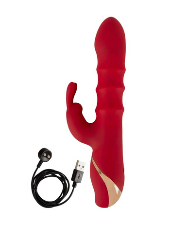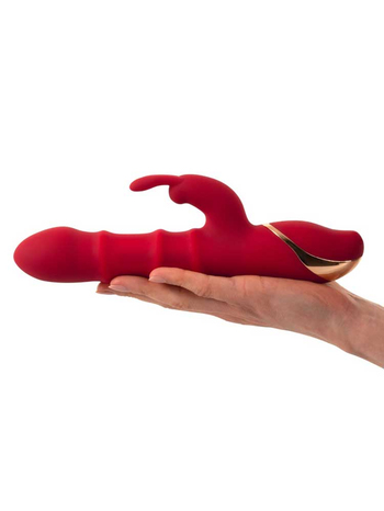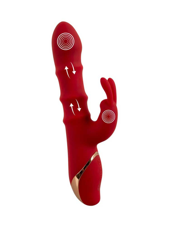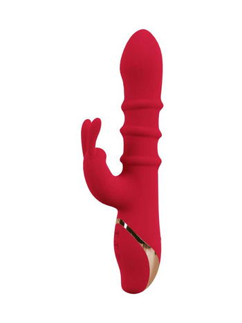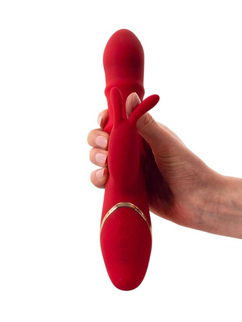 Πολυτελής και δυναμικός, σε έντονο κόκκινο χρώμα, με όμορφες χρυσές λεπτομέρειες, πρωτοποριακή σχεδίαση που ξέρει να αγκαλιάζει ακριβώς τα σωστά σημεία και άριστη λειτουργικότητα, ο δονητής διαθέτει έναν στιβαρό κορμό με ευρεία, διογκωμένη κεφαλή για άνετη διείσδυση και ένα μικρότερο στέλεχος τύπου rabbit, το οποίο θα τονώσει μοναδικά την κλειτορίδα σας, χαρίζοντάς σας μοναδικές στιγμές ευχαρίστησης.