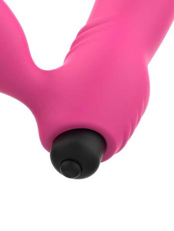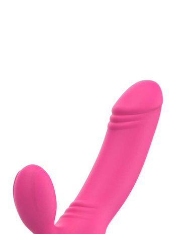 Σχεδιασμένος να προσφέρει ταυτόχρονη κολπική και κλειτοριδική διέγερση, μεγιστοποιώντας την ηδονή, ο δονητής διαθέτει έναν στιβαρό, δυναμικό άξονα με ελαφρά στρογγυλεμένη κεφαλή που μοιάζει με βάλανο πέους για εύκολη διείσδυση και ήπιες ραβδώσεις στα στρατηγικά σημεία, ιδανικό για τη διέγερση του κόλπου και του μαγικού σημείου G, καθώς και έναν μικρότερο διεγέρτη σε σχήμα απόλυτα ταιριαστό στη γυναικεία ανατομία, για γλυκιά τόνωση στην περιοχή της κλειτορίδας. Με αποσπώμενο bullet μονής λειτουργίας για συναρπαστικούς οργασμούς.