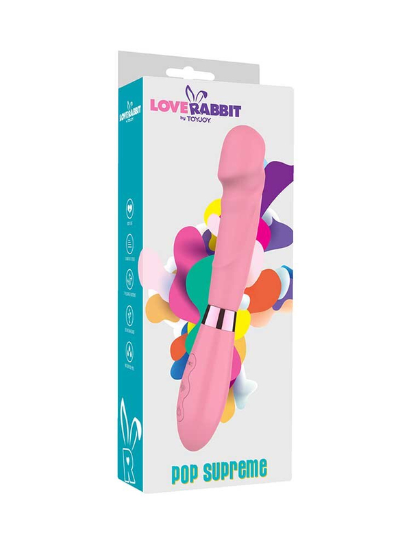 Μοντέρνος, ζωηρός και ελκυστικός, σε girly ροζ – φούξια χρώμα με διακριτικές μεταλλικές λεπτομέρειες, κομψή σχεδίαση και καινοτόμο λειτουργία, ο Pop Supreme με τον ελαφρά κυρτό, στιβαρό άξονα με την στρογγυλεμένη άκρη σε σχήμα βαλάνου για άνετη διείσδυση και τις διεγερτικές αυλακώσεις στην επιφάνεια για περαιτέρω ενίσχυση των αισθήσεων, θα αγκαλιάσει τέλεια τις ευαίσθητες περιοχές του κορμιού σας,, ασκώντας στοχευμένη πίεση στις κρυφές ερωτογενείς σας ζώνες και θα σας χαρίσει ανεπανάληπτες στιγμές απόλαυσης.
