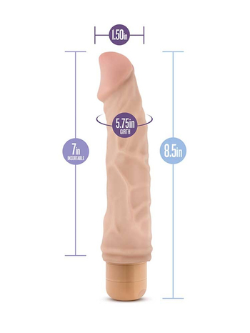 Το ευθυτενές, στιβαρό, σχετικά άκαμπτο κορμί του, ιδανικό για δυναμικό παιχνίδι, με την έντονη, ζουμερή βάλανο, διακοσμημένο με ρεαλιστικές φλέβες στην επιφάνειά του, έχει σχεδιαστεί για να φθάνει σε όλα τα οικεία σημεία ευχαρίστησης χαρίζοντας έντονες αισθήσεις, ενώ ο ισχυρός κινητήρας του με τα ρυθμιζόμενα προγράμματα έντασης, τα οποία ελέγχονται εύκολα μέσω του περιστρεφόμενου επιλογέα στη βάση του, μεταδίδει τις δυναμικές δονήσεις του εύστοχα και αποτελεσματικά προσφέροντάς σας ονειρεμένες κορυφώσεις.