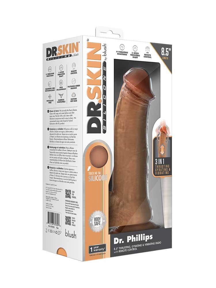 Το Dr. Phillips 8,5΄είναι κατασκευασμένο από μεταξένια απαλή σιλικόνη, σκληρυμένη με πλατίνα, απόλυτα ασφαλή για το σώμα χωρίς φθαλικές ενώσεις και λάτεξ, είναι επαναφορτιζόμενο μέσω USB καλωδίου (περιλαμβάνεται), ενώ είναι και αδιαβροχο για απόλαυση και στο νερό (πιστοποίηση IPX7) Καθαρίζεται εύκολα με ήπιο σαπούνι και χλιαρό νερό. Για εντονότερη αίσθηση να το συνοδεύετε πάντα με ένα ποιοτικό λιπαντικό με βάση το νερό.