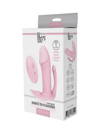 Ο Remote Tri Pleasurer διαθέτει ένα ισχυρό μοτέρ εφοδιασμένο με 9 διαφορετικά προγράμματα δόνησης, το οποίο στην πραγματικότητα είναι ένα αφαιρούμενο bullet, τοποθετημένο στη βάση του κυρίως στελέχους, μέσω του οποίου διαχέονται οι δονήσεις σε ολόκληρο τον δονητή, Ελέγχεται εύκολα με το ασύρματο χειριστήριο, εμβέλειας 10 μέτρων για παιχνίδια με το ταίρι σας και εκτός κρεβατοκάμαρας.