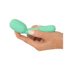 Μοντέρνο και ζωηρό, σε φωτεινό πράσινο βεραμάν, το Mini Vibrator Cuties, διαθέτει στιβαρό κορμό με διακοσμητικό μοτίβο στην επιφάνειά του, ευρεία, στρογγυλή κεφαλή με έντονες ραβδώσεις για έξτρα απόλαυση και εύκαμπτο λαιμό, σχεδιασμένο να αγκαλιάζει ακόμη και τα πιο στενά σημεία του σώματός σας χαρίζοντάς σας ανείπωτη ευτυχία.