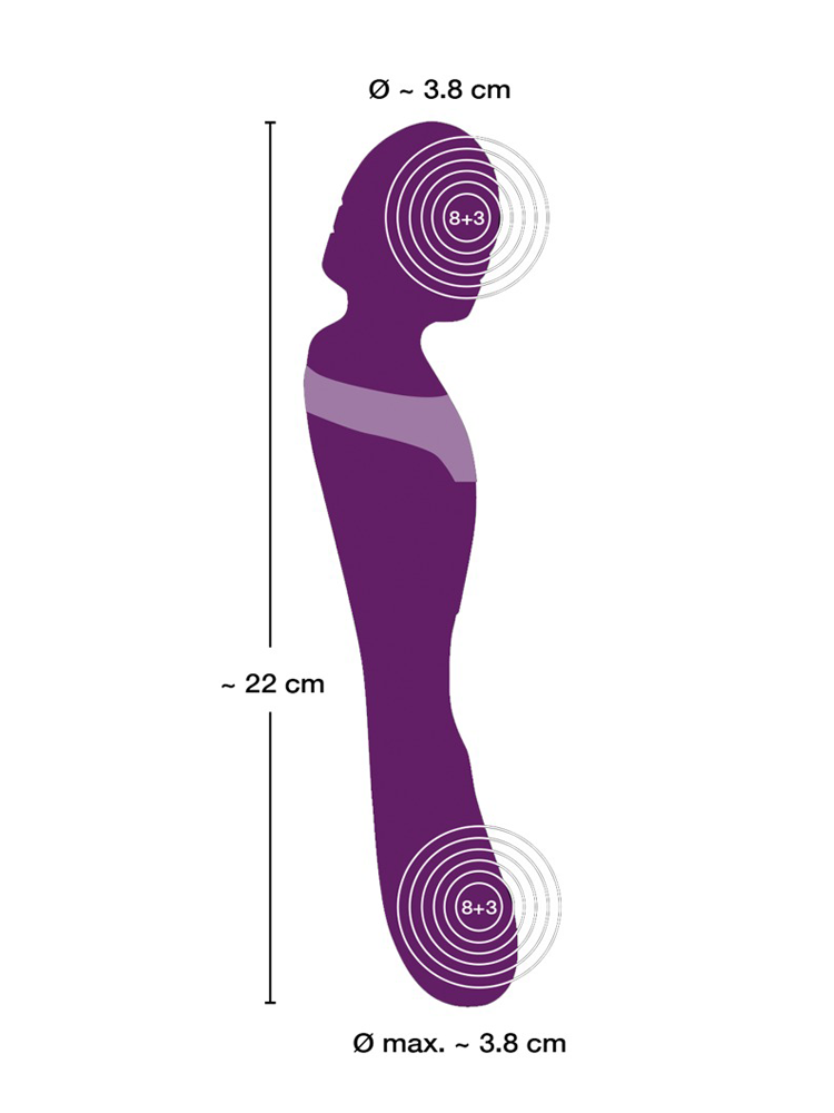 Στα ξεχωριστά προσόντα του και τα δύο ισχυρά, αλλά αθόρυβα μοτέρ του, ένα σε κάθε άκρο, εφοδιασμένα με 8 προγράμματα δόνησης το καθένα για μαγικούς συνδυασμούς απόλαυσης. Ανακαλύψτε αυτόν που πυροδοτεί τις επιθυμίες σας και διασφαλίστε ότι κάθε στιγμή θα ικανοποιεί τις προσωπικές σας ανάγκες.