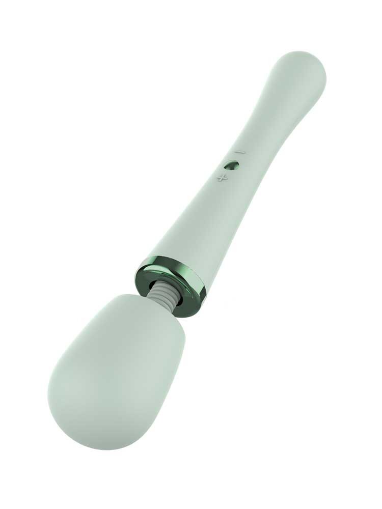 Πολυτελής και κομψός, σε απαλό πράσινο-φυστικί χρώμα με όμορφες, μεταλλικές λεπτομέρειες, ο διεγέρτης ξεχωρίζει για την ιδιαίτερα μακριά, στιβαρή λαβή, ιδανική για άνετο, σταθερό κράτημα και ακριβή στόχευση των καυτών hot-spot σας και τον εύκαμπτο λαιμό με τη λεία, ομαλή υφή, κατάλληλο για βελούδινα απαλό άγγιγμα και εξαιρετική ευελιξία στην κίνηση.