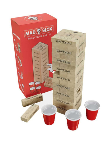Η ιδιαιτερότητα στο MadBlox βρίσκεται στα ίδια τα τουβλάκια, καθώς καθένα από αυτά έχει αποτυπωμένες επάνω του δύο προκλήσεις. Ως παίκτης, πρέπει να επιλέξετε να πραγματοποιήσετε μία από τις δύο. Οι προκλήσεις αυτές δοκιμάζουν τις δεξιότητές σας σε διάφορους τομείς, από τη λήψη αποφάσεων έως τον συντονισμό χεριού-ματιού. Αν αποφασίσετε να τις απορρίψετε πρέπει άντ’ αυτών να πιείτε ένα σφηνάκι.