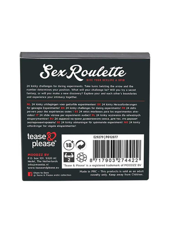 Μια περιστροφή του βέλους αρκεί για να απογειώσετε τον ενθουσιασμό σας για το σεξ, αφού με κάθε γύρισμα της ρουλέτας το βέλος της δείχνει έναν αριθμό, ο οποίος παραπέμπει σε μια ερωτική πρόκληση που πρέπει να πραγματοποιήσετε.