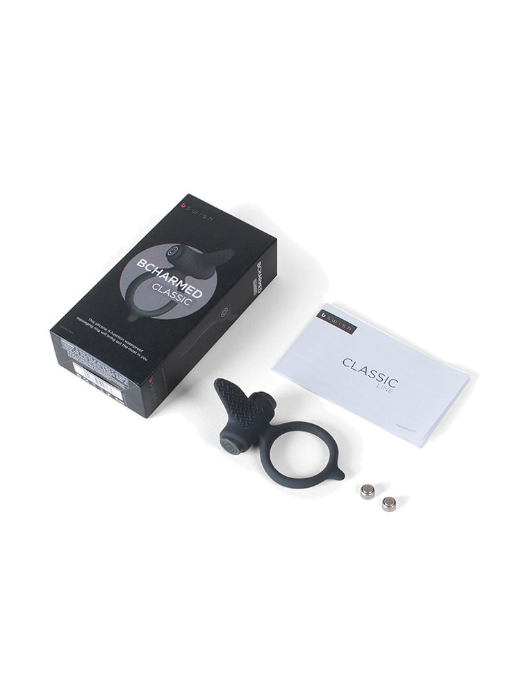 Η ποιότητα της κατασκευής του, η βελούδινη υφή του και η εργονομική του σχεδίαση, με το ανάγλυφο tickler στην κορυφή, θα τονώσουν μοναδικά τις ερωτογενείς ζώνες και των δύο σας, χαρίζοντάς σας αμέτρητες στιγμές ικανοποίησης. Το Bcharmed Classic διαθέτει ενσωματωμένο δονητή με πέντε εξαιρετικά αθόρυβες λειτουργίες δόνησης (σταθερή, παλλόμενη και κλιμακούμενη), ο οποίος ενεργοποιείται και απενεργοποιείται πολύ εύκολα με το πάτημα ενός κουμπιού στο πλάι του tickler. Εφαρμόστε το ring στη βάση του πέους – ταιριάζει σε όλα τα μεγέθη - το δαχτυλίδι σιλικόνης θα συγκρατήσει τη ροή του αίματος, ενισχύοντας τη στύση, καθώς οι γαργαλιστικές ακίδες του tickler θα πιέζουν την κλειτορίδα ή την περιοχή του περινέου, προσφέροντάς σας ονειρεμένους οργασμούς.