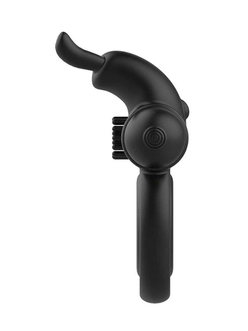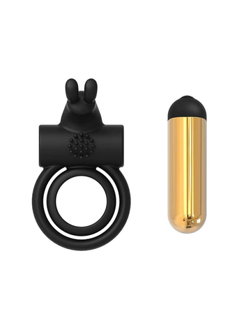 Κομψό, αισθησιακό και σέξι, σε πολυτελές μαύρο χρώμα, με ξεχωριστές, χρυσές λεπτομέρειες, το cock ring διαθέτει δύο εύκαμπτους δακτυλίους, ο μικρότερος με αντιολισθητική δομή εσωτερικά, είναι ιδανικός για τη βάση του πέους, ενώ ο μεγαλύτερος, ο πιο εύκαμπτος, χρησιμοποιείται ως δακτύλιος όσχεου. Επιπλέον διαθέτει διεγέρτη κλειτορίδας σε σχήμα κουνελιού με δύο εύκαμπτα αυτάκια και ανάγλυφη επιφάνεια για έξτρα διέγερση των γλυκών hot spot της συντρόφου σας. Τέλος, ο ισχυρός κινητήρας του σε σχήμα σφαίρας προσφέρει 7 μοτίβα δόνησης και 3 ταχύτητες, χαρίζοντας εντονότερους οργασμούς και στους δύο συντρόφους.