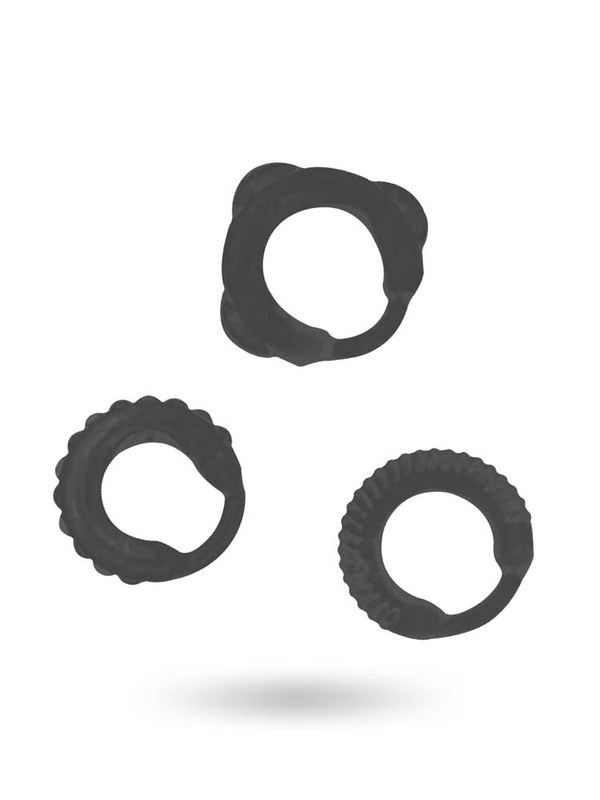 Κομψοί και ελαστικοί σε σούπερ σέξι, εργονομικό σχεδιασμό και υπέροχο σχήμα, το οποίο εμποδίζει την ολίσθησή τους επάνω στο δέρμα, οι δακτύλιοι διατίθενται σε τρία διαφορετικά σχήματα για να επιλέξετε αυτό που ταιριάζει… στη διάθεση της στιγμής. Ταιριάζουν άριστα μεταξύ τους, προσφέροντάς σας τη δυνατότητα ποικίλων εναλλακτικών συνδυασμών. Φορέστε τους στη βάση του πέους, στους όρχεις ή και παράλληλα και νοιώστε τη φύση σας να ζωντανεύει.