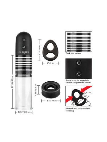 Ο διαφανής κύλινδρος και το παχύ, ανθεκτικό περίβλημα σιλικόνης, τύπου ντόνατ έχουν σχεδιαστεί για να δημιουργούν ισχυρή αναρρόφηση και τέλεια στεγανοποίηση εύκολα και γρήγορα, με το πάτημα ενός μόνο κουμπιού. Παρακολουθήστε την πρόοδό σας χρησιμοποιώντας τα σημάδια μέτρησης στον άξονα του κυλίνδρου. Μόλις φτάσετε στο μέγιστο αποτέλεσμα πατήστε τη βαλβίδα γρήγορης απελευθέρωσης αέρα για να εκτονώσετε την πίεση χωρίς να χάσετε την ισχυρή αναρρόφηση. Είστε πλέον έτοιμοι να ξεκινήσετε το παιχνίδι. Για να διατηρήσετε τα αποτελέσματα, αλλά και την απόλαυση περισσότερο χρόνο φορέστε το παρεχόμενο cock ring στα επίμαχα σημεία και νιώστε σαν πραγματικός… επιβήτορας.
