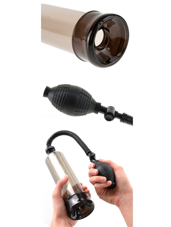 Εισάγετε το πέος σας (χαλαρό ή όρθιο) στην υποδοχή, πατήστε την αντλία για να δημιουργήσετε πίεση στο θάλαμο και νοιώστε το μόριό σας να ανταποκρίνεται άμεσα, καθώς η αναρρόφηση του κενού σωρεύει το αίμα στον άξονα, επιτρέποντας την αύξηση του μήκους και της διαμέτρου, αλλά και την ενίσχυση της αντοχής και της απόδοσής σας. Επιπλέον, ο ημιδιάφανος σκούρος σωλήνας σας δίνει τη δυνατότητα να βλέπετε το πέος σας όσο μεγαλώνει, επιτείνοντας περαιτέρω τη διέγερση, ενώ η βαλβίδα αποσυμπίεσης αέρα συμβάλλει στην άμεση αποσυμφόρηση της πίεσης. Για να παρατείνετε την εκσπερμάτιση, τοποθετήστε το συνημμένο Cock Ring στο πέος σας, μέχρι το σημείο που νοιώθετε άνετα. Η σφικτή συμπίεση θα διατηρήσει την στύση σας, θα παρατείνει την εκσπερμάτιση και θα επεκτείνει τη διασκέδαση. Όταν τελειώσετε, αποσυνδέστε τον κύλινδρο από τον εύκαμπτο σωλήνα κενού, καθαρίστε τα εξαρτήματα με ζεστό νερό και σαπούνι ή με ένα ποιοτικό toy cleaner και αποθηκεύστε τη συσκευή.