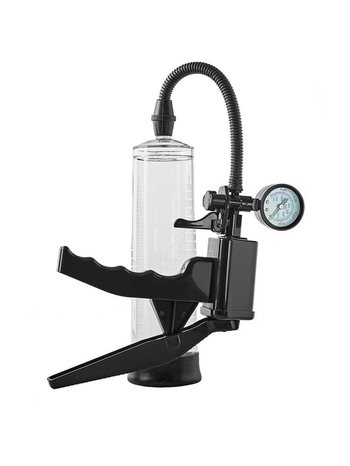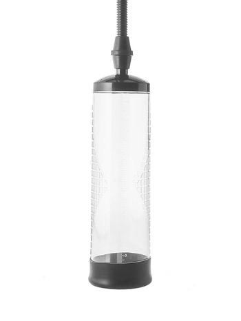 Στο πάνω τμήμα του κυλίνδρου ξεκινά ένας εύκαμπτος σωλήνας αέρα που σας επιτρέπει να αντλείτε με ευκολία σε οποιαδήποτε θέση βρίσκεστε, ο οποίος καταλήγει σε ένα ιδιαίτερα αξιόπιστο μανόμετρο / μετρητή για ακριβή αποτελέσματα, ένα μπουτόν άμεσης αποσυμπίεσης του αέρα και μία εργονομική λαβή, τύπου πιστόλι, η οποία θα κάνει την άντληση πραγματικό …παιχνιδάκι. Απλά πατήστε απαλά μέχρι να φτάσετε στο μέγιστο επίπεδο αναρρόφησης και απολαύστε καυτές, σφύζουσες στύσεις.