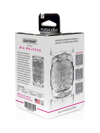 Κατάλληλο για ενίσχυση των σόλο συνεδριών αυνανισμού, αλλά και για συναρπαστικό oral play με τον / την σύντροφό σας, το Quickshot Mia Malkova διαθέτει συμπαγή, άκρως διακριτική σχεδίαση με δύο διαφορετικά στόμια διείσδυσης: στο ένα άκρο υπάρχει ένα κολπικό άνοιγμα, πιστό αντίγραφο του αιδοίου της ηθοποιού και στο άλλο η πιστή αναπαραγωγή του πρωκτού της, για ακόμα πιο εκρηκτικές απολαύσεις.